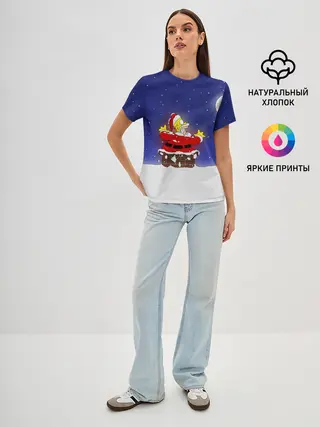 Женская базовая футболка / Гомер Санта Клаус