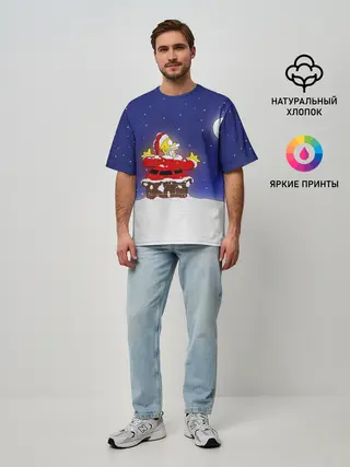Мужская футболка оверсайз / Гомер Санта Клаус