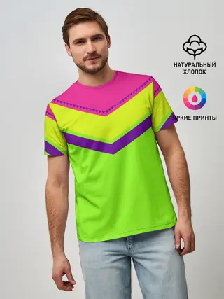 Мужская футболка оверсайз / Цветные треугольники_ салатовы