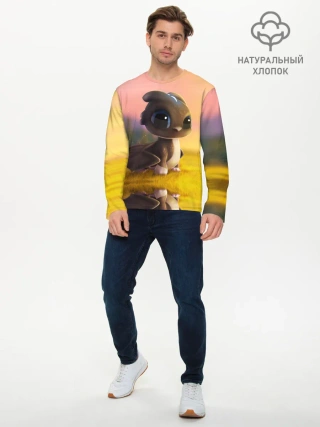 Мужской лонгслив базовый / Дракончик на берегу озера