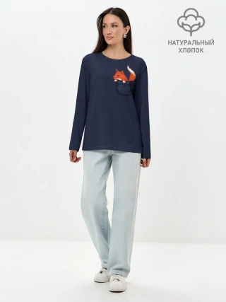 Лонгслив женский. Хлопок / Лисенок в Кармашке