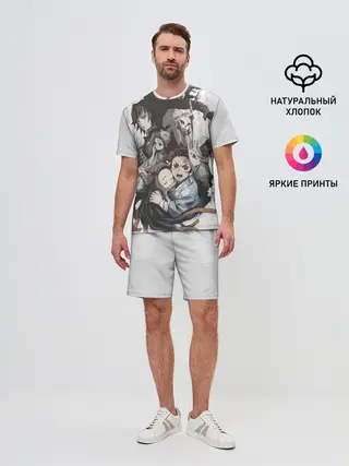 Мужской костюм с шортами / Kimetsu no Yaiba на сером