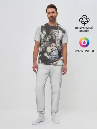 Мужская пижама с брюками / Kimetsu no Yaiba на сером
