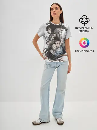 Женская базовая футболка / Kimetsu no Yaiba на сером