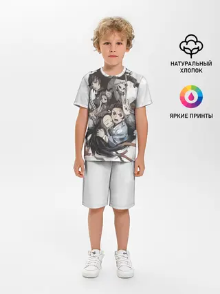 Детская пижама с шортами / Kimetsu no Yaiba на сером