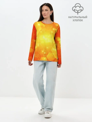 Лонгслив женский. Хлопок / ОРАНЖЕВЫЕ СОТЫ