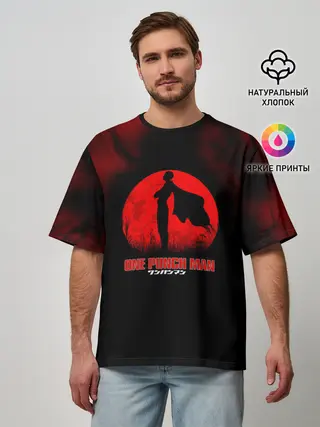 Мужская футболка оверсайз / Красное солнце Ванпанчмен