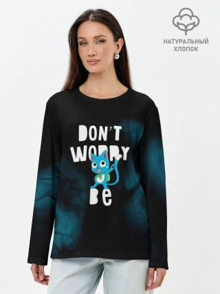 Лонгслив женский. Хлопок / Не волнуйся, будь Хэппи
