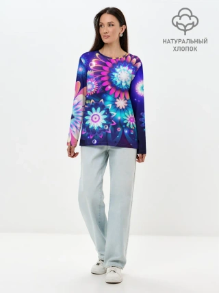 Лонгслив женский. Хлопок / Неоновые Цветы