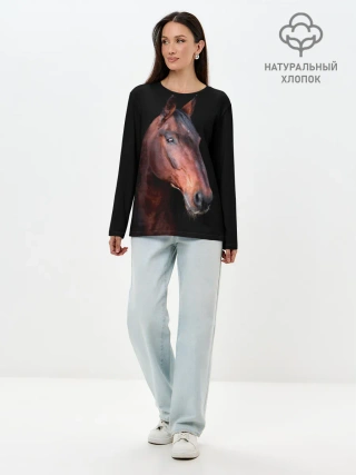 Лонгслив женский. Хлопок / Гнедая лошадь