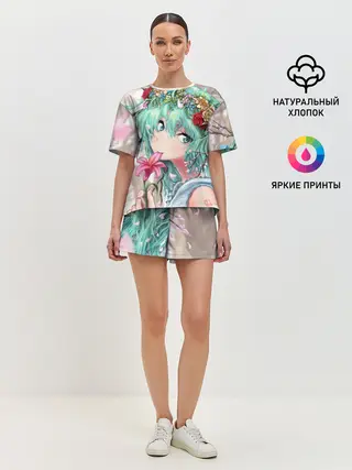 Женская пижама с шортами / Цветок и Хацуне Мику