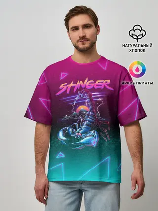 Мужская футболка оверсайз / РЕТРО СКОРПИОН НЕОН