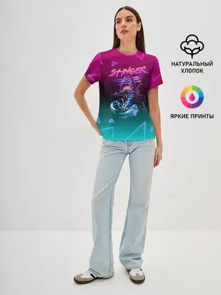 Женская базовая футболка / РЕТРО СКОРПИОН НЕОН