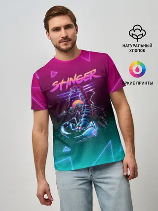 Мужская базовая футболка / РЕТРО СКОРПИОН НЕОН