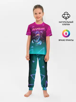 Детская пижама с брюками / РЕТРО СКОРПИОН НЕОН