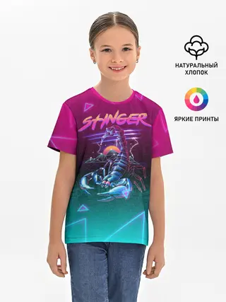 Детская базовая футболка / РЕТРО СКОРПИОН НЕОН