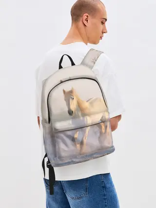 Мужская футболка оверсайз / Белая лошадь на снегу