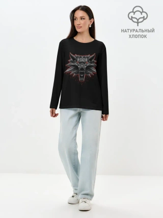 Лонгслив женский. Хлопок / Медальон Волка