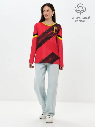 Лонгслив женский. Хлопок / Belgium home EURO 2020