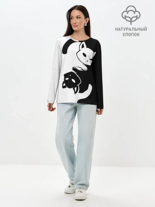 Лонгслив женский. Хлопок / ДВА КОТА КУВЫРКАЮТСЯ.