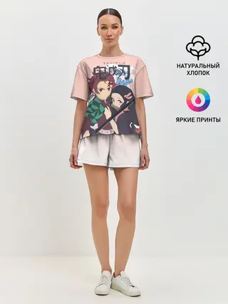 Женская футболка оверсайз / Клинок рассекающий демонов