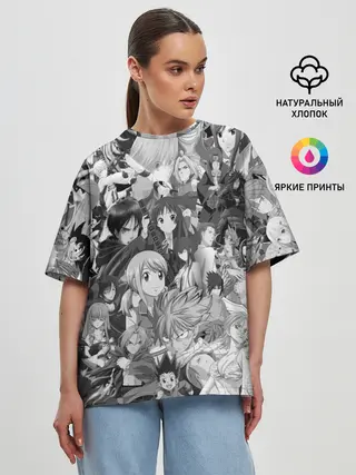 Женская футболка оверсайз / МНОГО ЧЕРНО-БЕЛЫХ АНИМЕ ДЕВОЧЕК