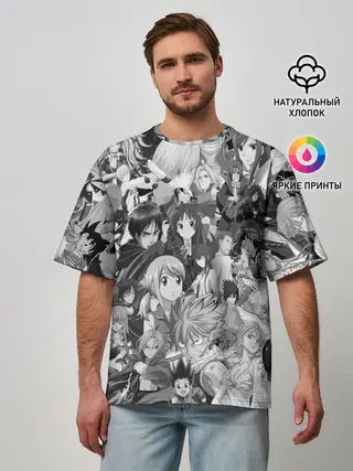 Мужская футболка оверсайз / МНОГО ЧЕРНО-БЕЛЫХ АНИМЕ ДЕВОЧЕК