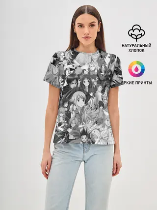Женская базовая футболка / МНОГО ЧЕРНО-БЕЛЫХ АНИМЕ ДЕВОЧЕК