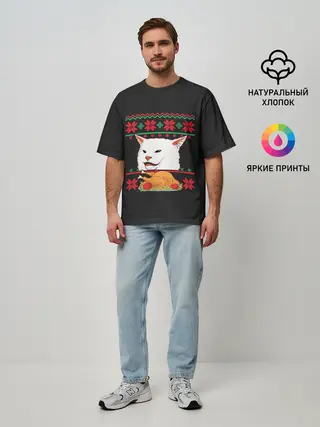 Мужская футболка оверсайз / Woman Yelling at Cat