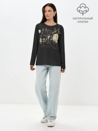 Лонгслив женский. Хлопок / My Neighbor Totoro группа на черном