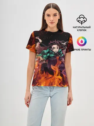 Женская базовая футболка / Kimetsu no Yaiba в огне