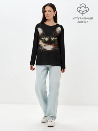 Лонгслив женский. Хлопок / Зеленоглазый кот
