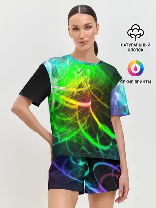 Женская пижама с шортами / ЗЕЛЕНЫЙ НЕОН