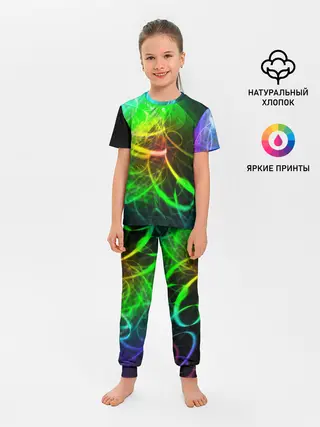 Детская пижама с брюками / ЗЕЛЕНЫЙ НЕОН