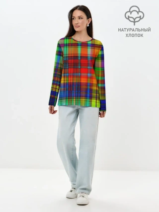Лонгслив женский. Хлопок / Неоновая сетка