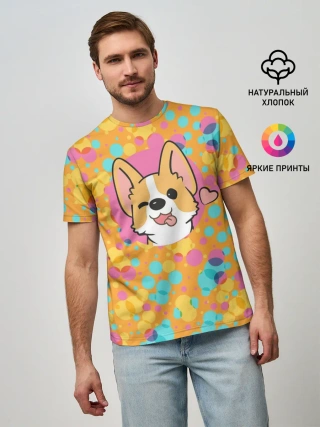 Мужская футболка оверсайз / Милый корги