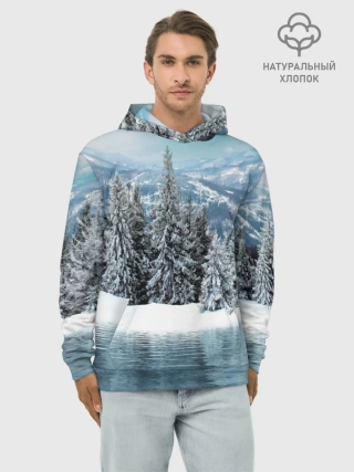 Худи мужской база хлопок / Зимний лес