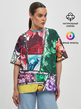 Женская футболка оверсайз / EPIC MAIN ANIME CHARACTERS 3D!