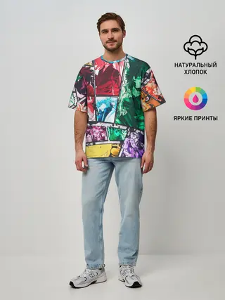 Мужская футболка оверсайз / EPIC MAIN ANIME CHARACTERS 3D!