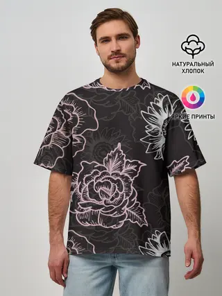 Мужская футболка оверсайз / Цветочный узор
