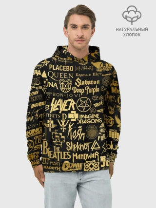Худи мужской база хлопок / ЛОГОТИПЫ РОК ГРУПП GOLD
