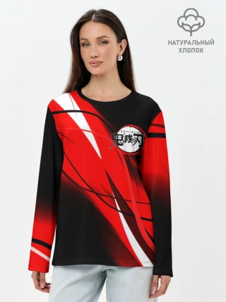Лонгслив женский. Хлопок / KIMETSU NO YAIBA маленький лого
