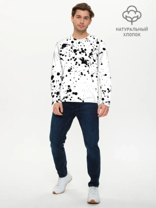 Мужской лонгслив базовый / Далматинец - брызги чёрными пятнами