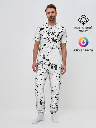 Мужская пижама с брюками / Далматинец - брызги чёрными пятнами