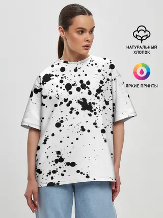 Женская футболка оверсайз / Далматинец - брызги чёрными пятнами