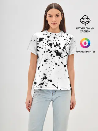 Женская базовая футболка / Далматинец - брызги чёрными пятнами