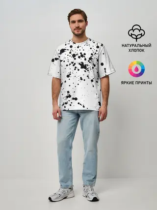 Мужская футболка оверсайз / Далматинец - брызги чёрными пятнами