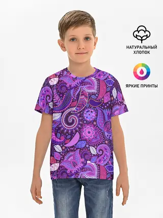 Детская базовая футболка / фиолетовый этнический дудлинг