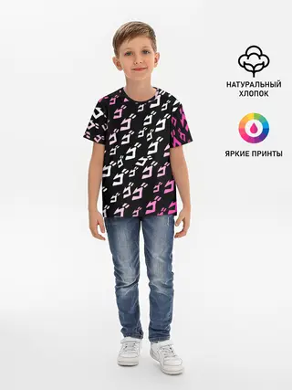 Детская базовая футболка / Паттерн джоджо белорозовый
