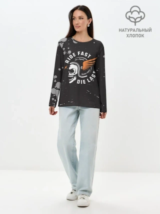 Лонгслив женский. Хлопок / RIDE FAST - DIE LAST | МОТО ЖИЗНЬ